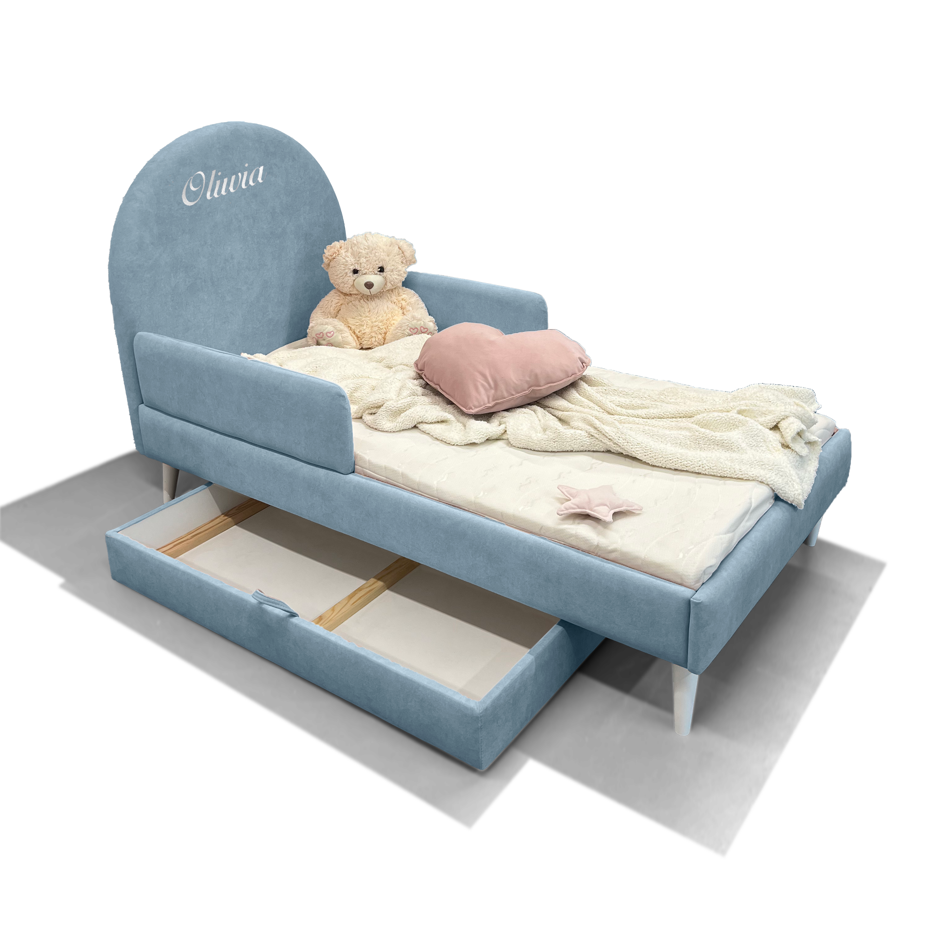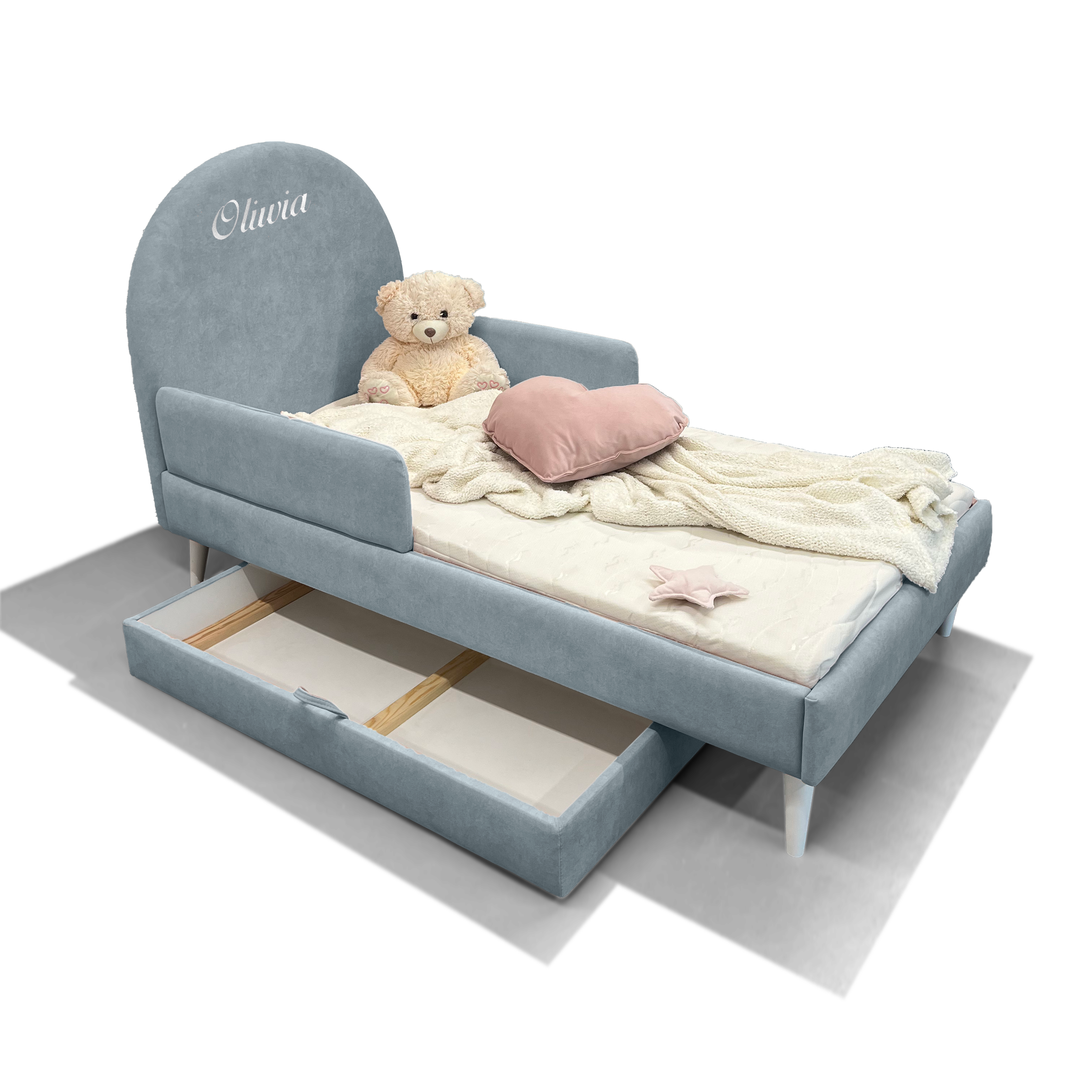✅ Personalizowany haft – imię dziecka na zagłówku dodaje uroku i czyni łóżko wyjątkowym,