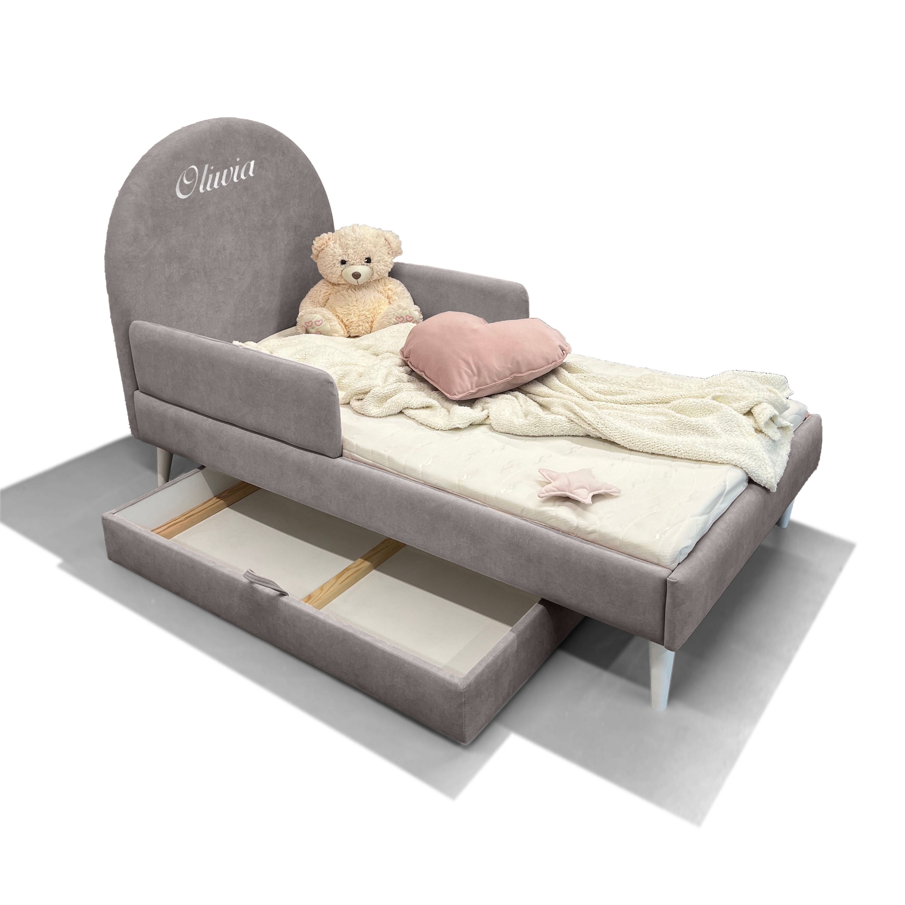 Łóżko dla dziecka z haftowanym imieniem – solidna konstrukcja i najwyższa jakość wykonania