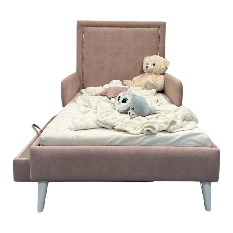 GLAMOUR – Elegancja i komfort na najwyższym poziomie! Subtelne zdobienia i luksusowe wykończenie sprawiają, że to łóżko doda szyku i przytulności każdemu dziecięcemu pokojowi.