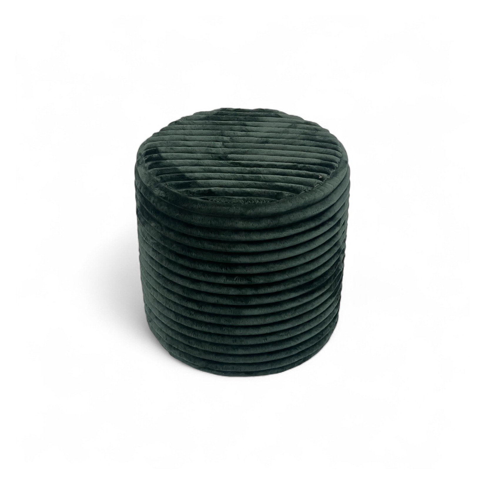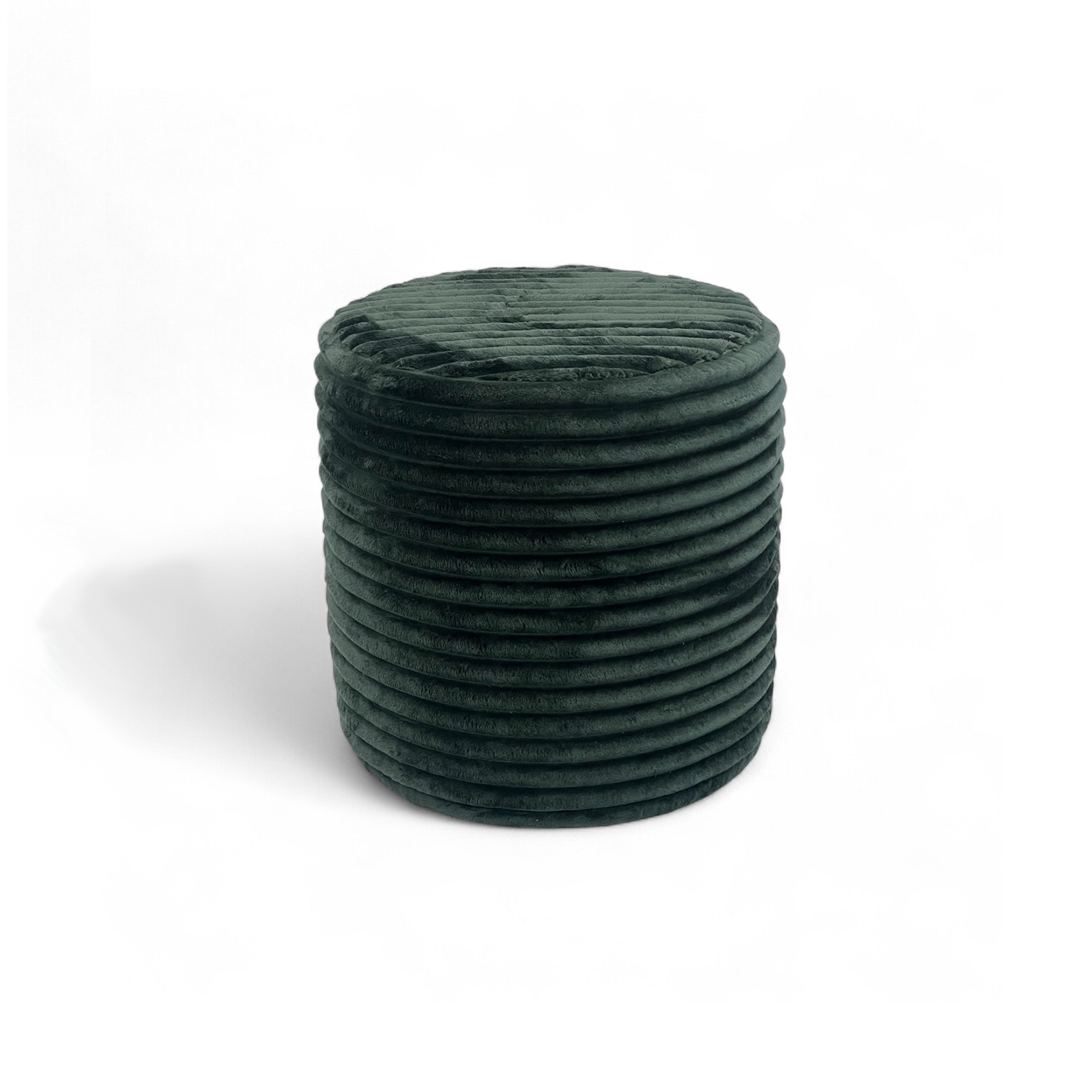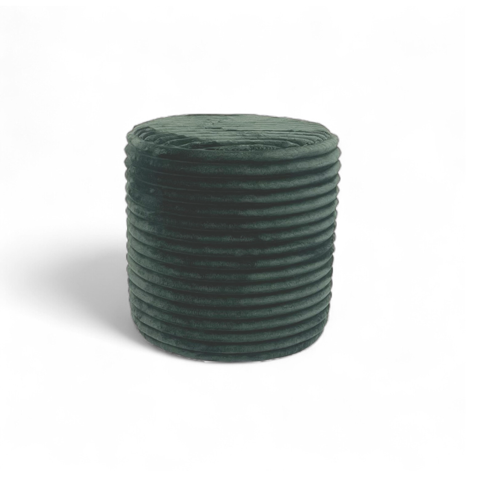 Stylowa i miękka pufa Nubo w głębokim zielonym kolorze. Wykonana z eleganckiej sztruksowej tkaniny – idealna do salonu, sypialni lub przedpokoju.